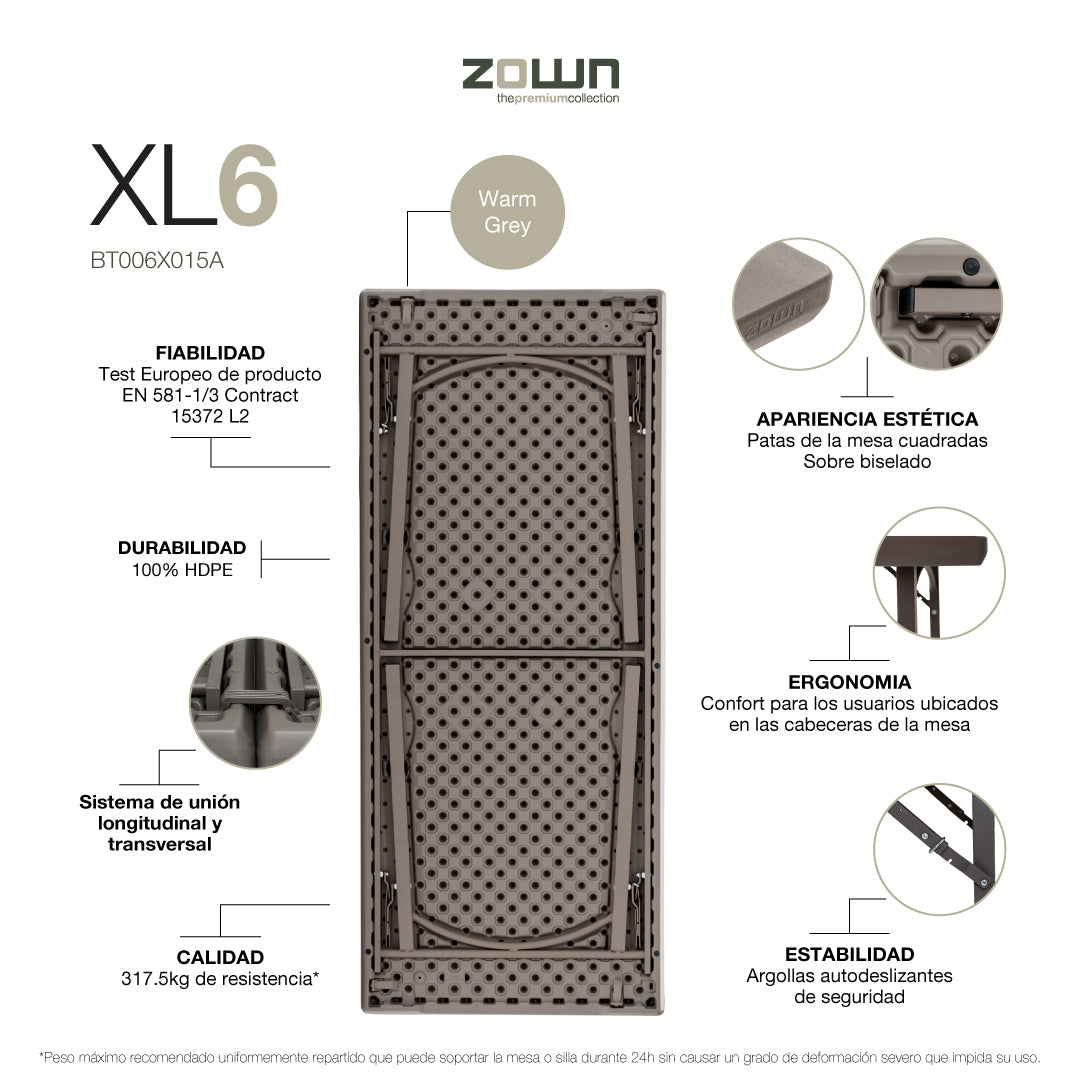 Mesa Plegable rectangular 183x76 cm XL 6 Zown Premium